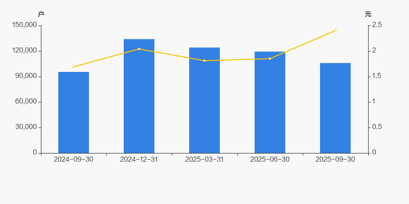 截至2025年9月30日,公司最新总股本为25.13亿股,且均为流通股。户均持有流通股数量由上期的2.11万股上升至2.37万股,户均流通市值5.7万元。