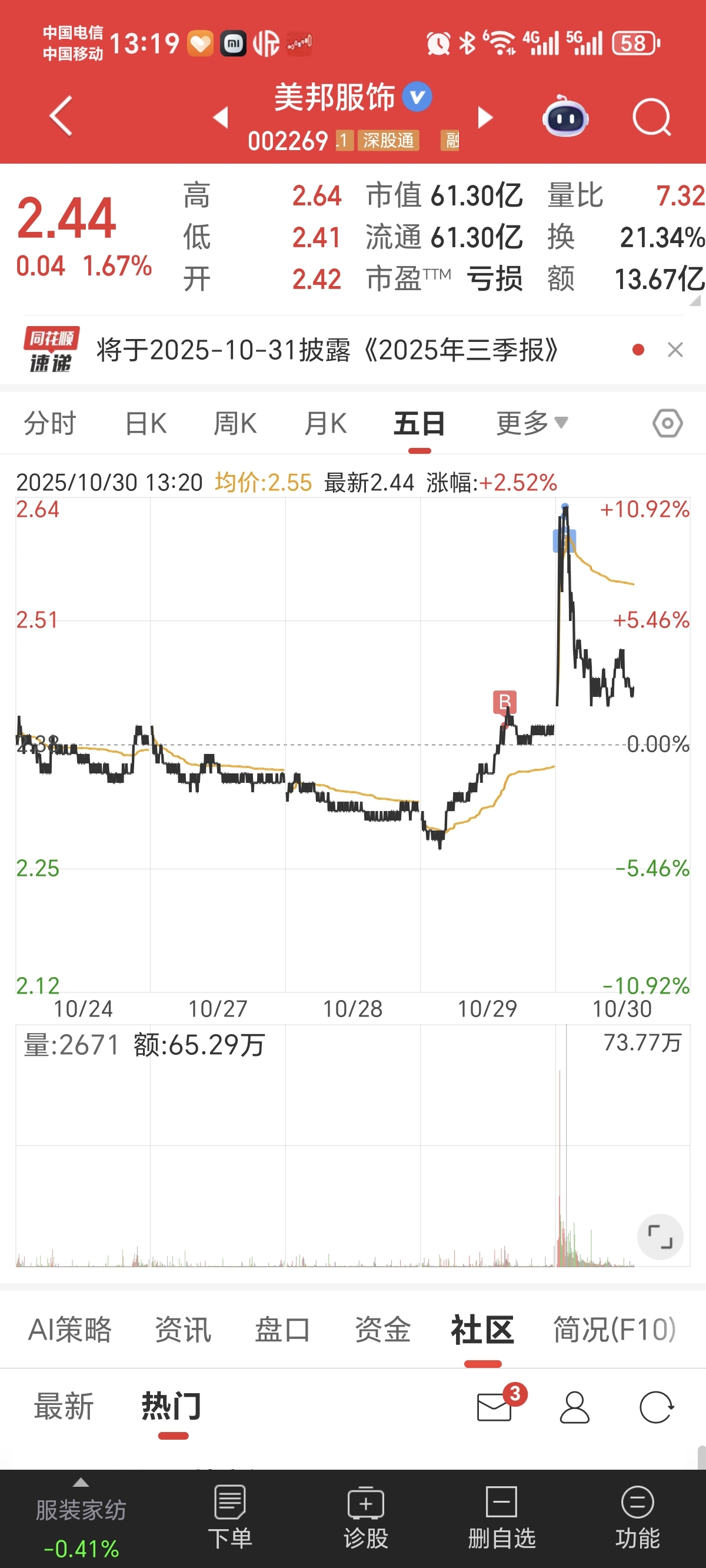 $美邦服饰(SZ002269)$ 哈哈,可能今天就我的操作最亮眼。