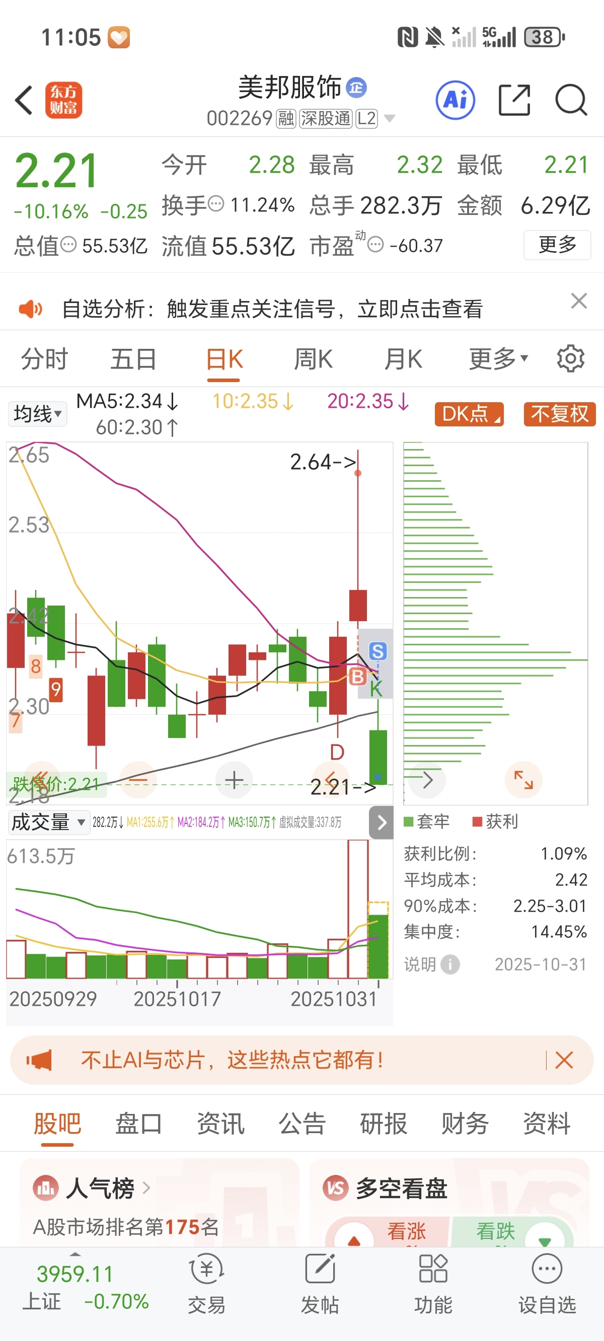 $美邦服饰(SZ002269)$ 我还能说什么呢,几个月白玩玩倒亏,打板失败的后果就是这样,主力哪天不高兴直接跌停砸