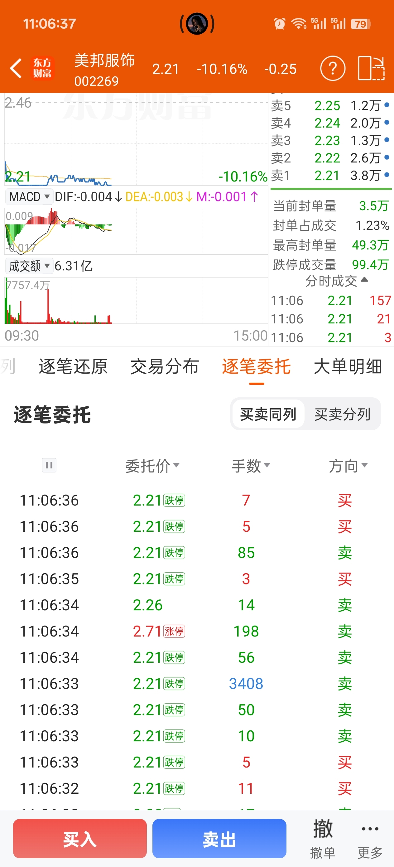 $美邦服饰(SZ002269)$ 下午可能就不好卖了。卖就坚决一点。别为了一分两分。