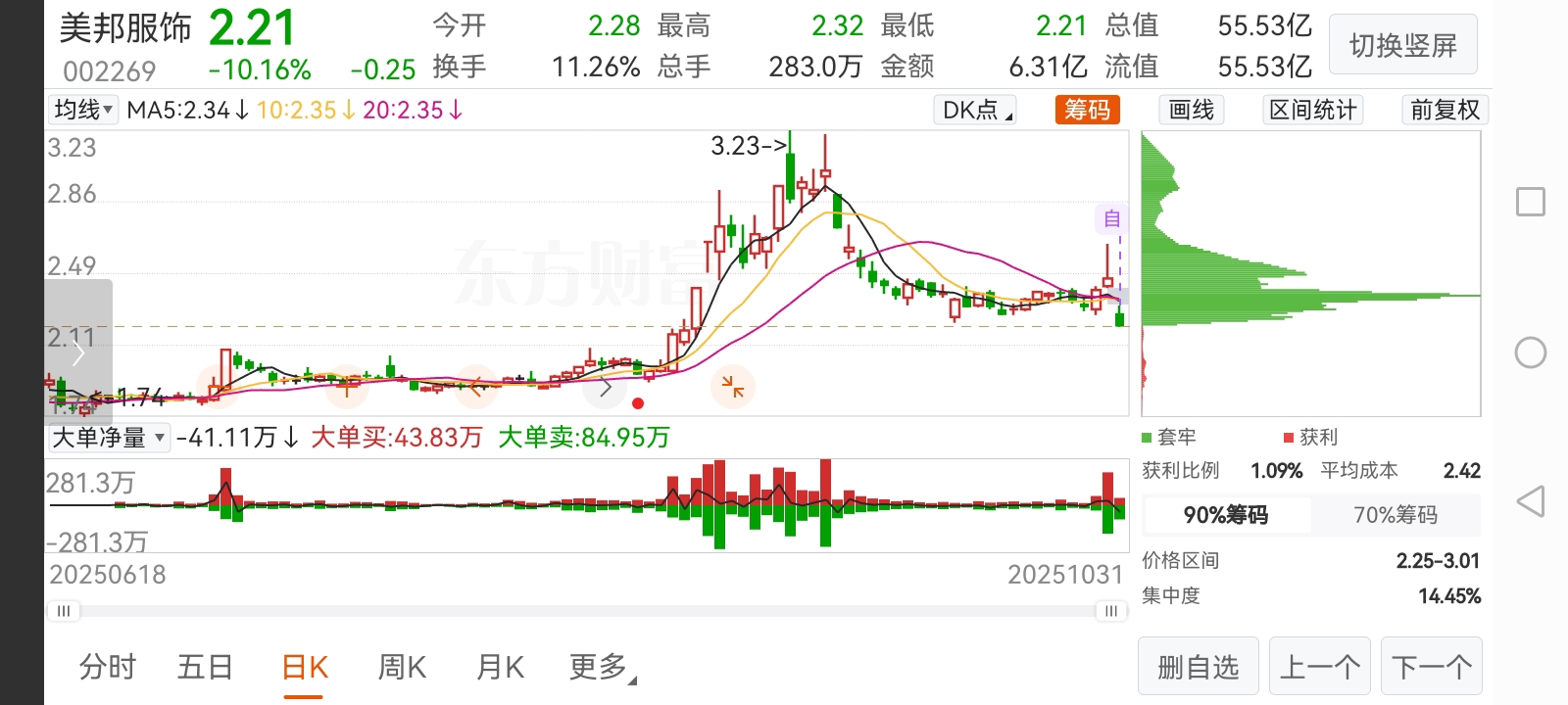 $美邦服饰(SZ002269)$ 看筹备分布图主力也被套住了!明天再跌停就抄底!