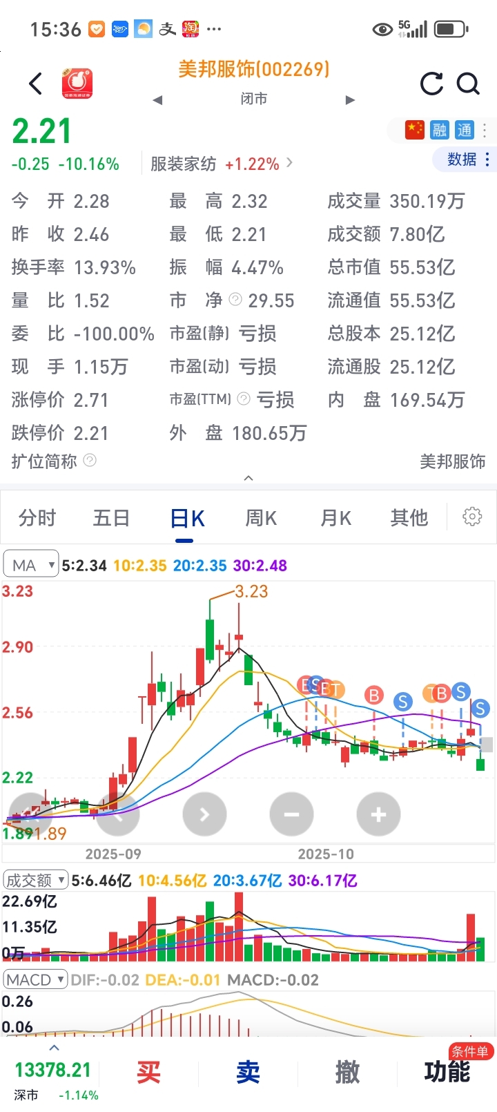$美邦服饰(SZ002269)$ 清仓了。唉
