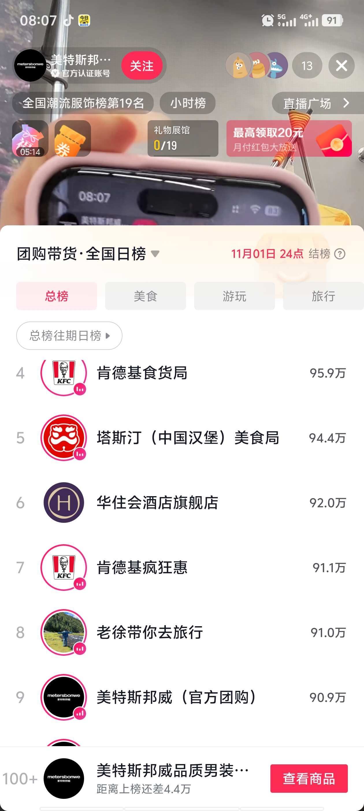 双十一,美邦爆火啊,抖音总榜排9名,周一这不好起来了吗?