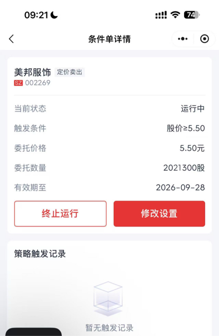 $美邦服饰(SZ002269)$ 挂条件单快两个月了,一点起色都没有,我跟老庄耗着…股价不涨,你们都赖我吧…