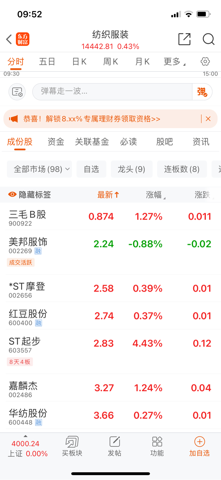 $美邦服饰(SZ002269)$ 昨天按照纺织板块进来的。??一买就绿?也不跟?这种不就是垃圾股吗?