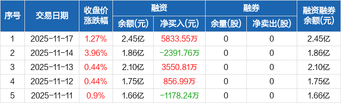 美邦服饰:融资净买入5833.55万元,融资余额2.45亿元(11-17)