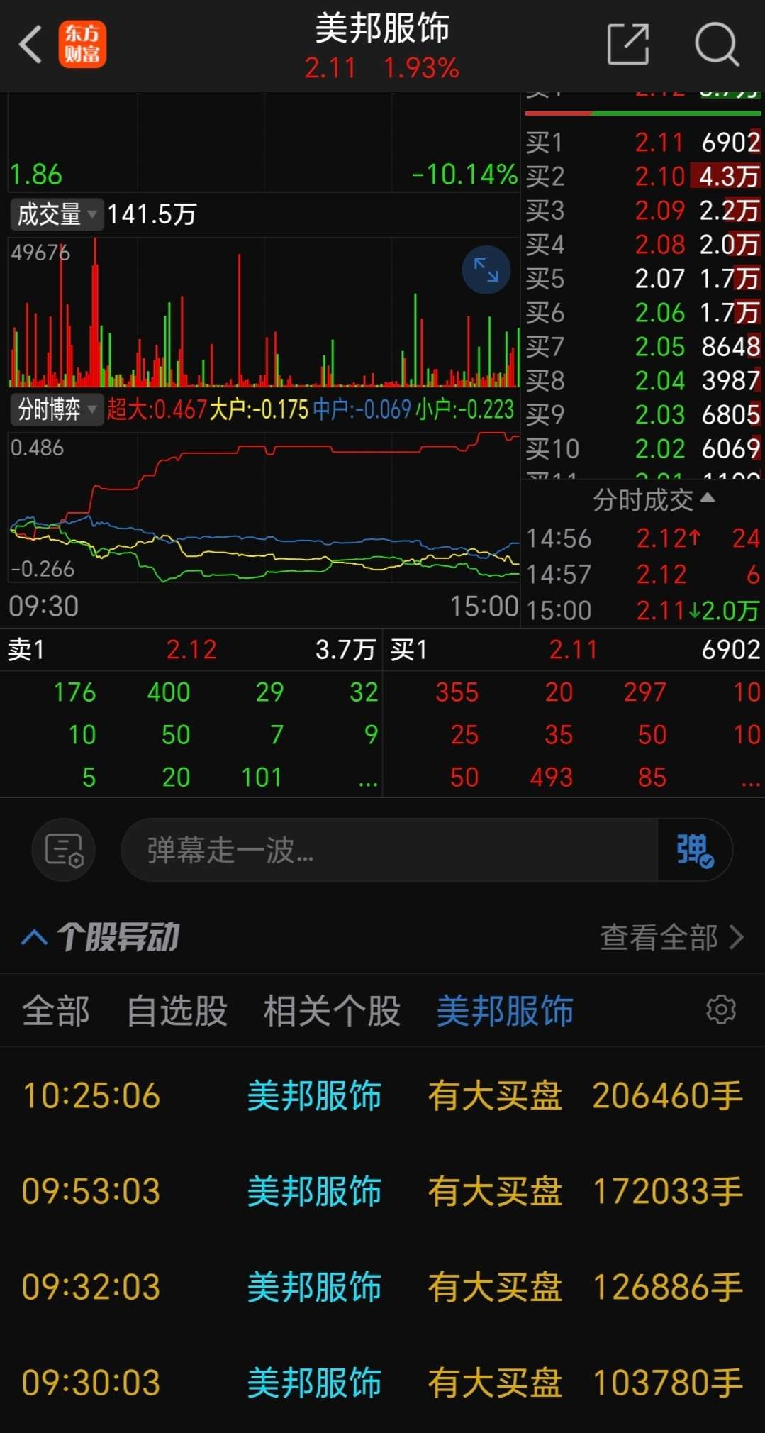 $美邦服饰(SZ002269)$ 主力资金总是先知先觉。明天集合竞价直接顶一字,全仓梭哈干。
