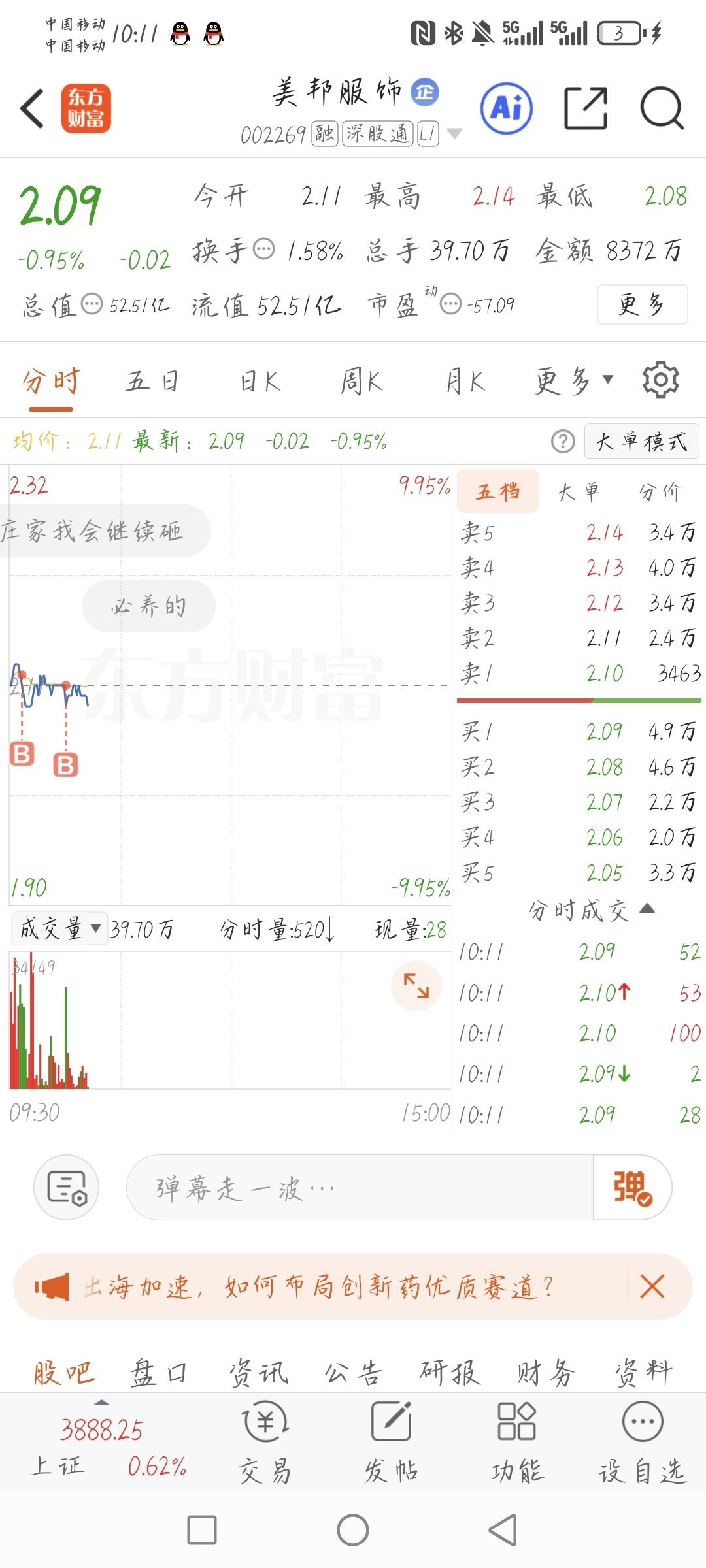 $美邦服饰(SZ002269)$ 你爱咋咋吧,你想退市我陪你。我准备英语六级啊,短时间不看股市了再见