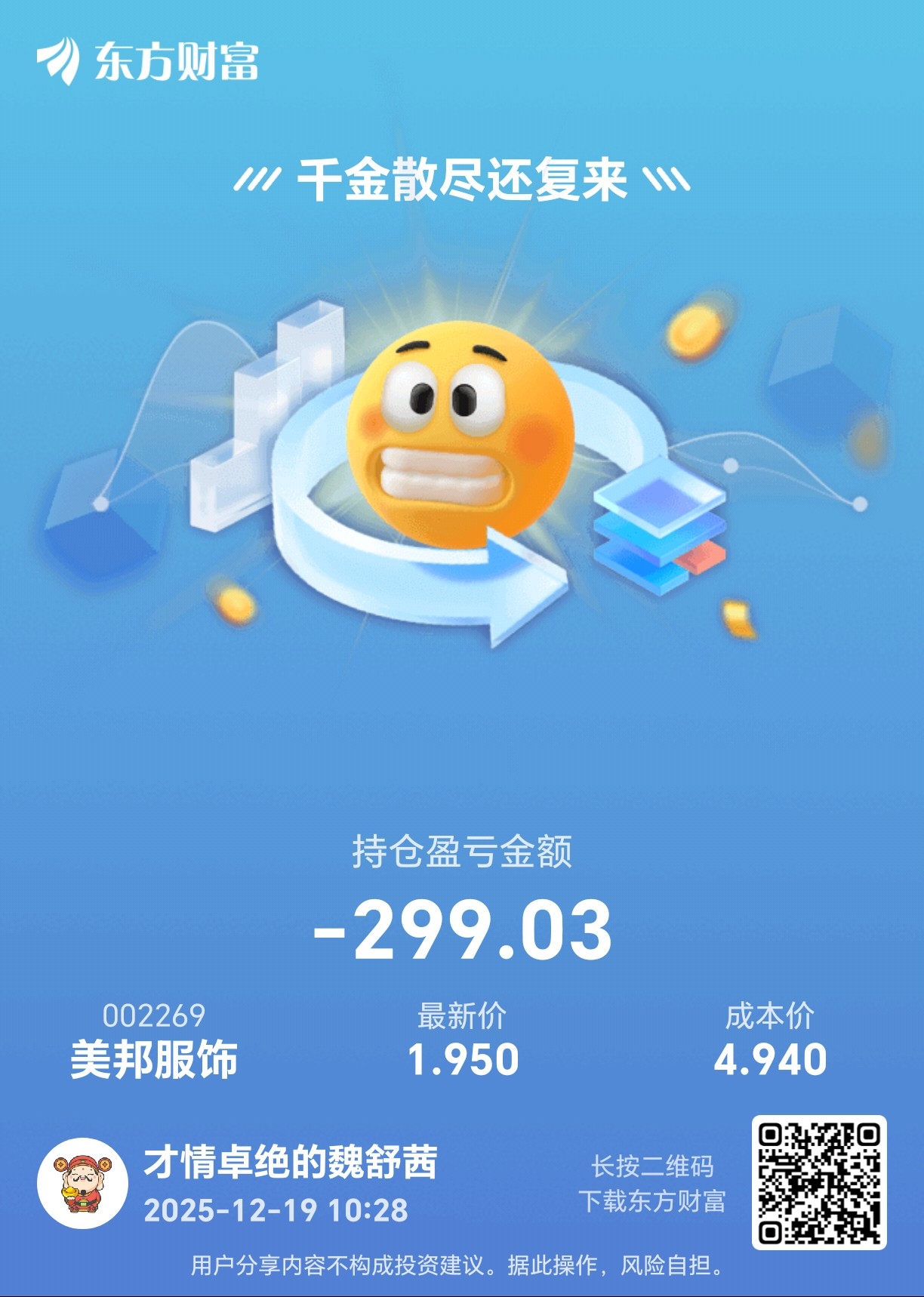 温馨提示: 1.根据《证券法》规定,禁止编造、传播虚假信息或者误导性信息,扰乱证券市场;2.用户在本社区发表的所有资料、言论等仅代表个人观点,与本网站立场无关,不对您构成任何投资建议。用户应基于自己的独立判断,自行决定证券投资并承担相应风险。《东方财富社区管理规定》