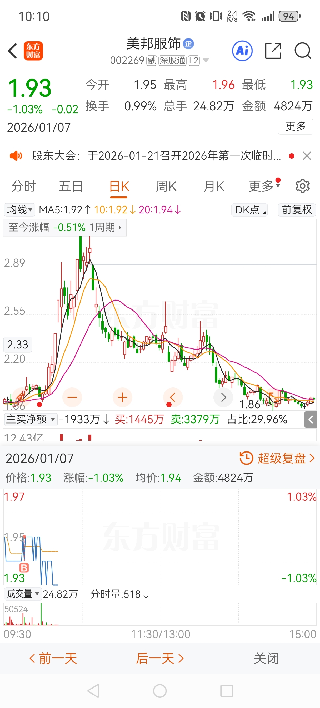 $美邦服饰(SZ002269)$ 买了就跌,无敌了