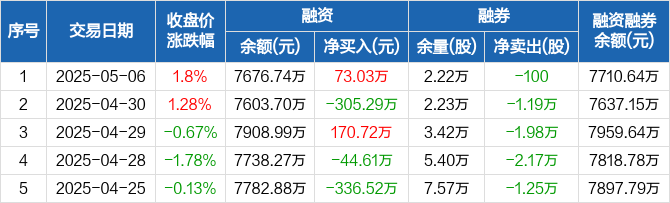 华明装备:融资净买入73.03万元,融资余额7676.74万元(05-06)