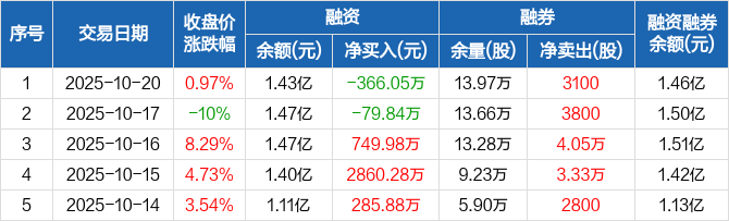华明装备:融资净偿还366.05万元,融资余额1.43亿元(10-20)
