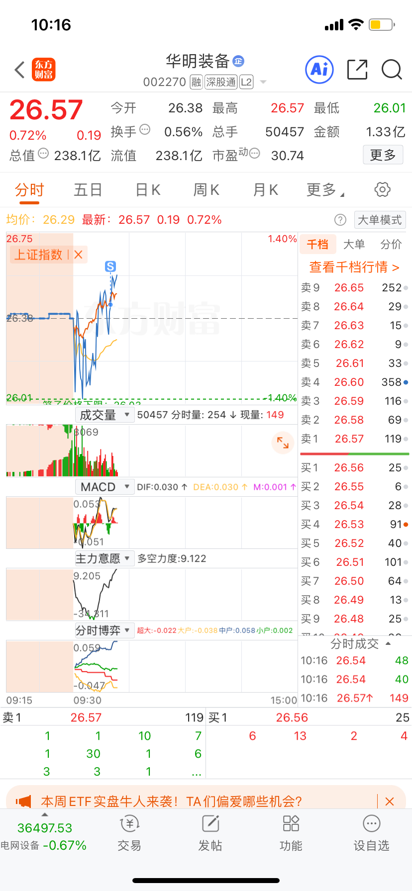 $华明装备(SZ002270)$ 现在AI已经可以修改用户的单子了吗?我在10:01分M头卖的,设置了26.3的买点,成功了。然而魔幻的是,我的卖单显示在10:09,从 26.3拐上去的那个位置。我一直盯盘的。当我傻吗?!