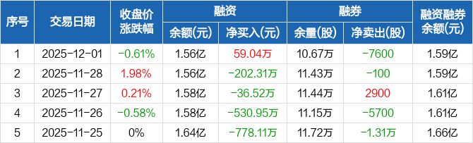 华明装备:融资净买入59.04万元,融资余额1.56亿元(12-01)