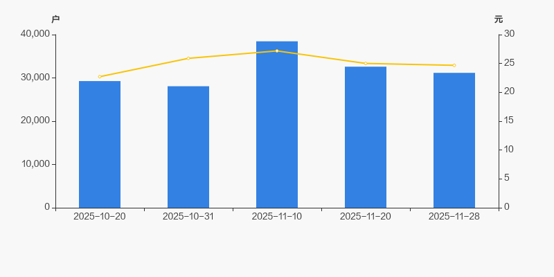 2025年10月20日至今,公司股东户数有所增长,区间涨幅为6.49%。2025年10月20日至2025年11月28日区间股价上涨8.66%。