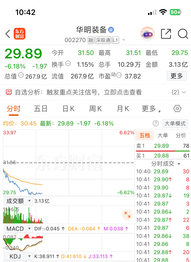 $华明装备(SZ002270)$ 底背离,抄底