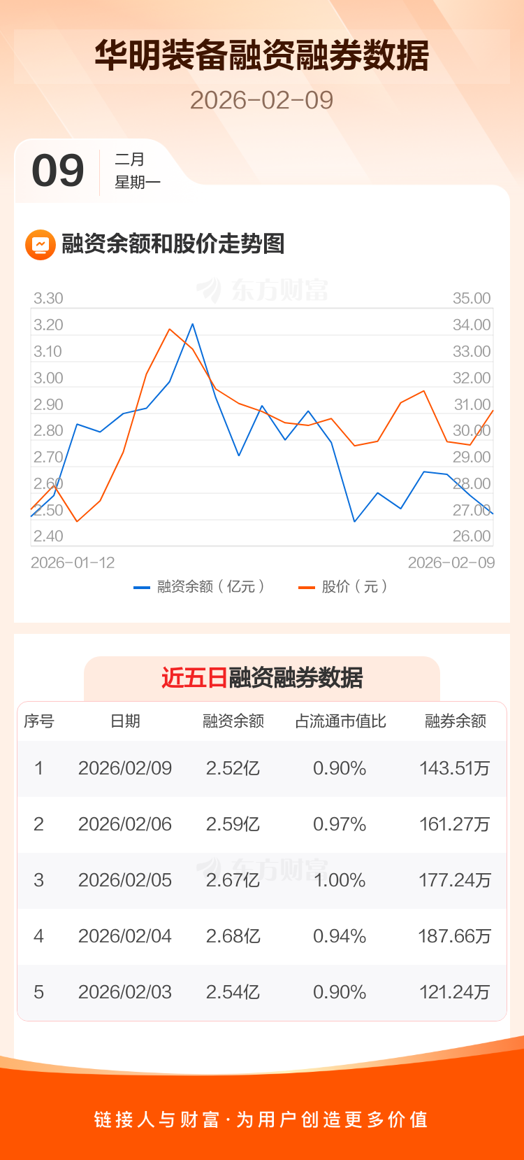 交易所最新数据显示,华明装备于2026年2月9日获融资买入2328.02万元,融资偿还2947.50万元,当日融资净偿还619.48万元。目前,该股融资余额2.52亿,占流通市值比例为0.90%。