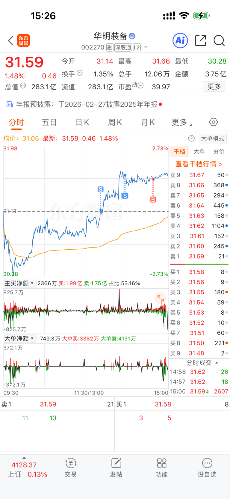 $华明装备(SZ002270)$ 哥们今天有点强,想了想还是买回来了