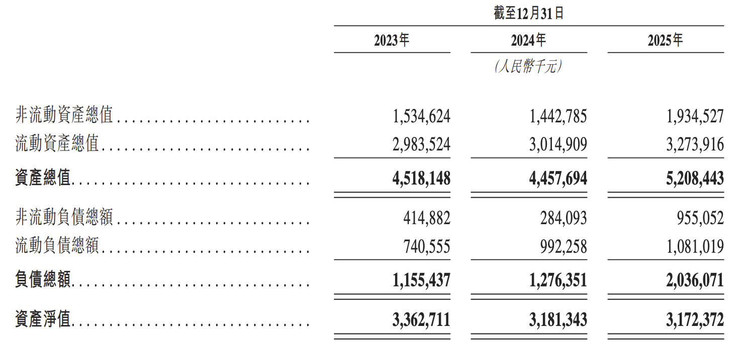 营收增长的同时,华明装备的资产负债率也在逐渐走高,从2023年末的25.6%升至2025年末的39.1%。其负债总额从2023年末的11.55亿元升至2025年末的20.36亿元。