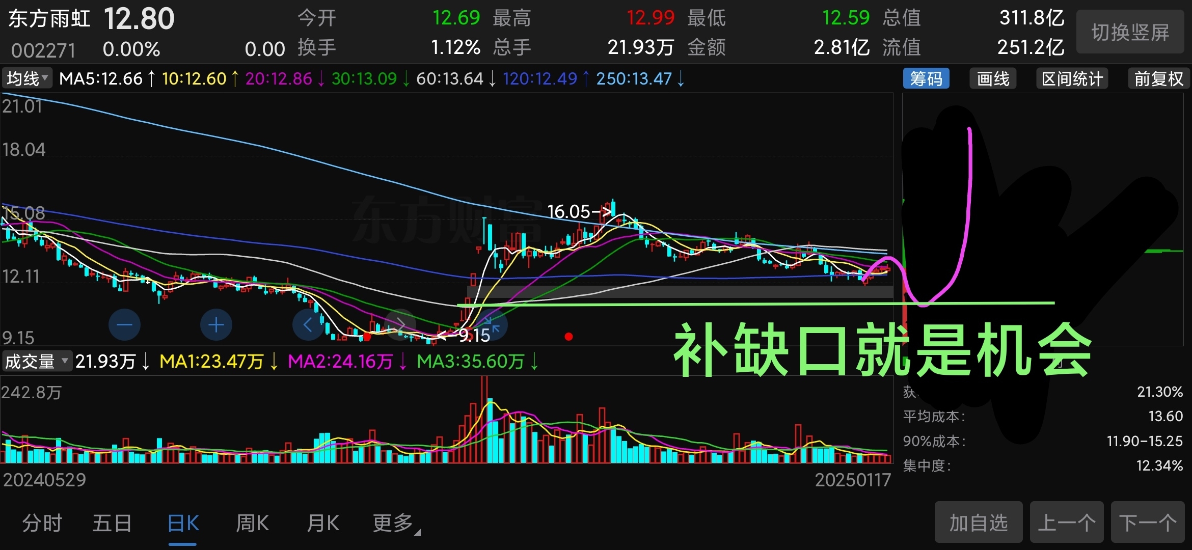 $东方雨虹(SZ002271)$ 大家准备好钱,砸跌停补缺口就是机会,呵呵呵,年年都是玩这几个路数,业绩是专门用来片那种看基本面炒股的,正因为这家公司质地不算太坏,所以大量的散户抄底洗也洗不掉,那董事长要操作自家股价,它有啥办法呢?那就来个大幅度计提把你们吓出去呗片筹码呗,像景峰华夏幸福这种筹码片到手连续拉涨停,反正这个又不饭发,坐等下周来几个跌停,往死里抄底,把操盘底部抄烂