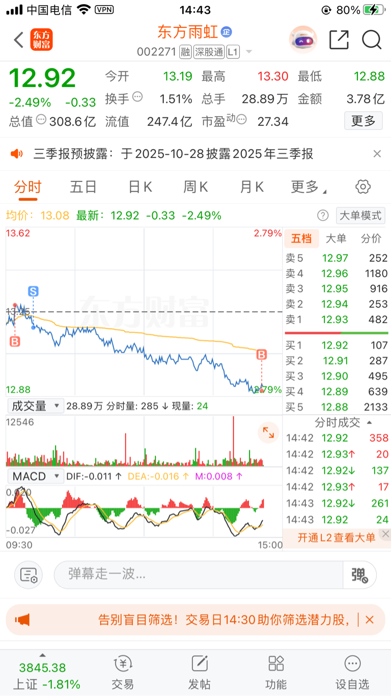 $东方雨虹(SZ002271)$ 上午差点做个倒 T,幸亏马上及时改正,明天继续 T
