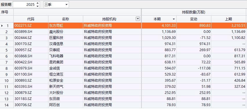 $东方雨虹(SZ002271)$ $西藏天路(SH600326)$ $万 科A(SZ000002)$ 科威特投资局第一重仓股啊,是第二名的四倍。