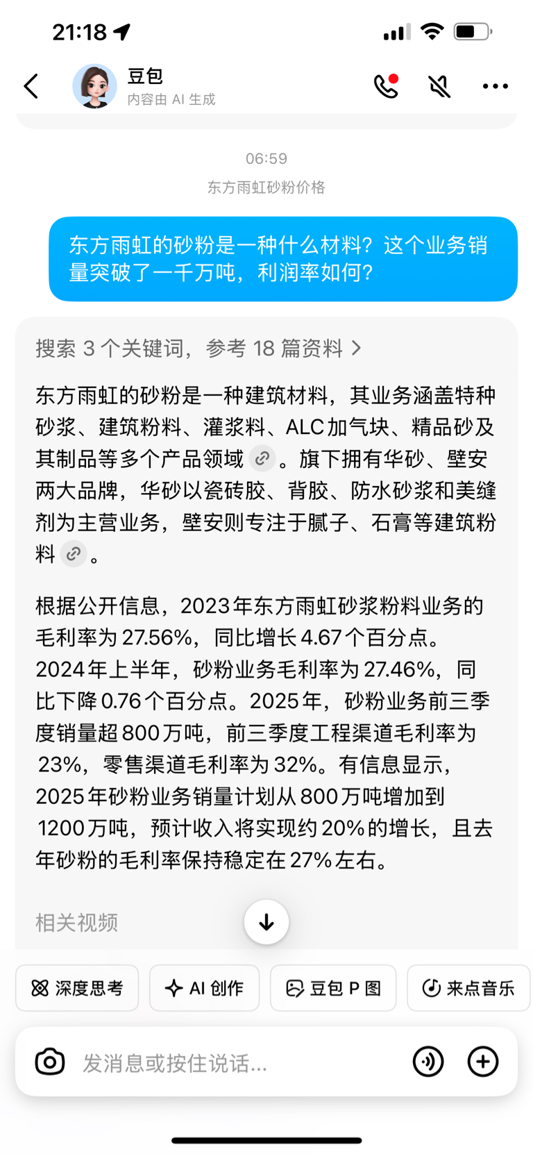 $东方雨虹(SZ002271)$ 如此算来,公司公布光是灰砂销量今年已突破了一千万吨,那这一块业务的利润都不少啊