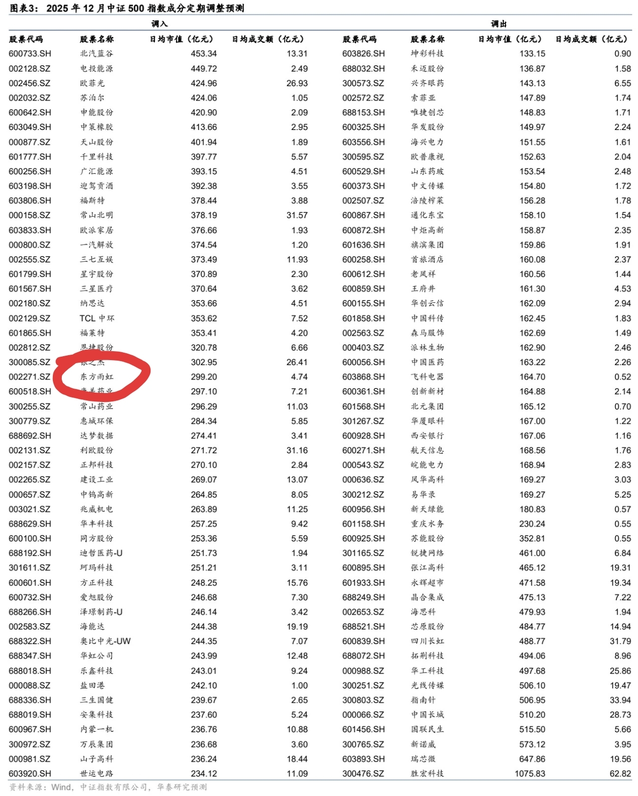$东方雨虹(SZ002271)$ $华泰证券(SH601688)$ 2025年12月12日盘后指数成份股调整,东方雨虹等50只个股会纳入中证500指数(来源:华泰证券),大概会带来约7亿资金指数基金净流入。今天流出了一个亿,没有对冲,跌了4个点了。只能等月底公布后的基金来拉了。