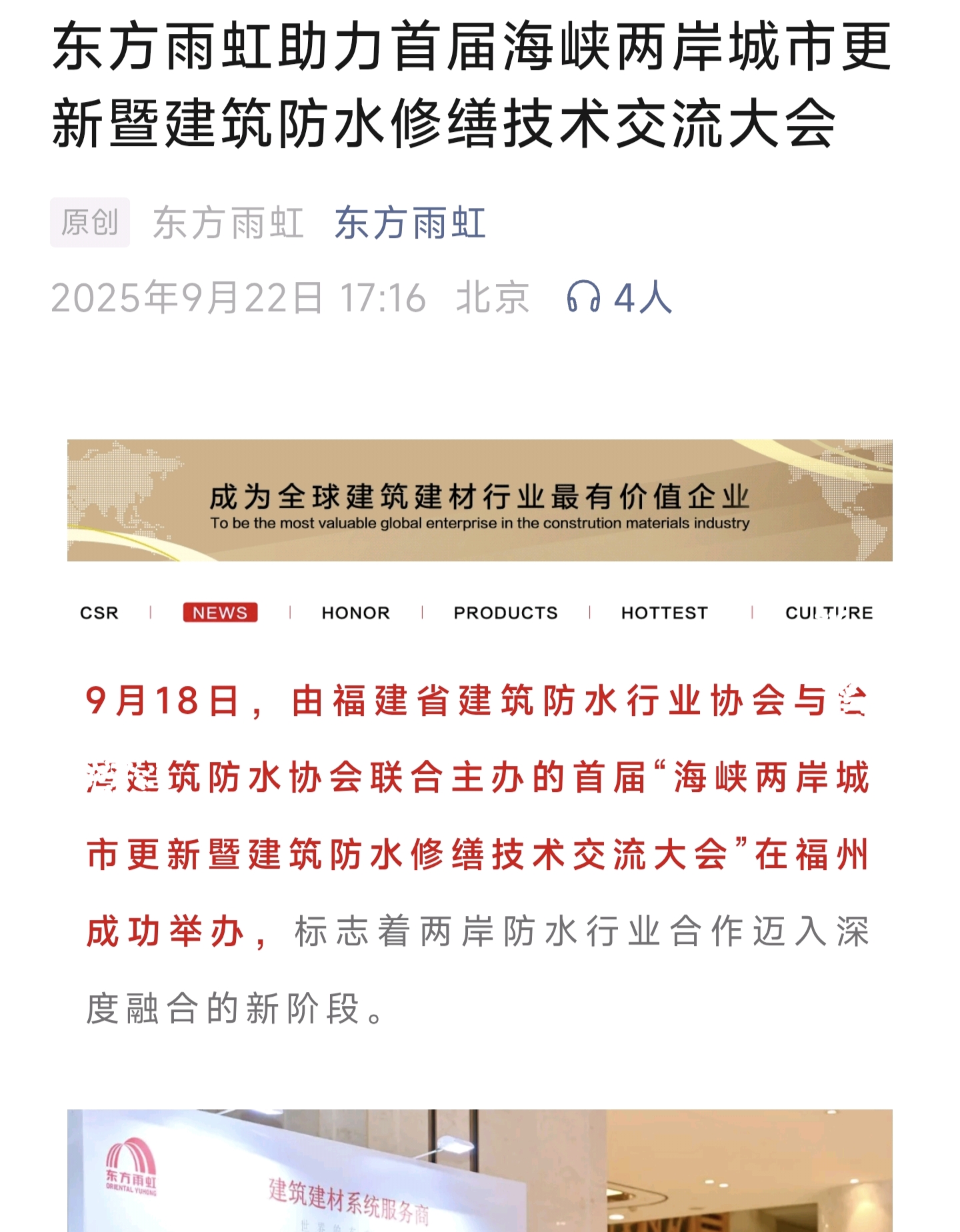 东方红能蹭上名字概念吗?东方雨虹助力首届海峡两岸城市更新暨建筑防水修缮技术交流大