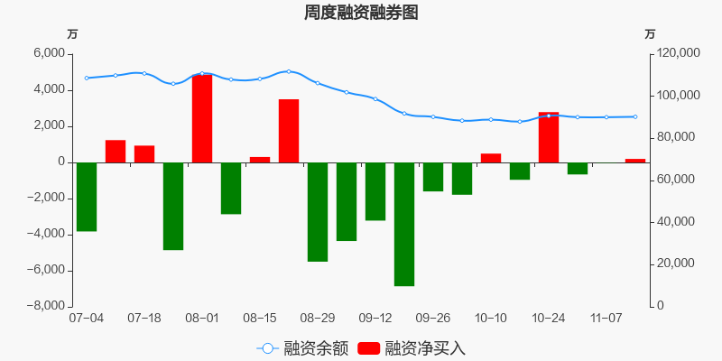 东方雨虹本周(2025/11/10-2025/11/14)累计涨幅达5.68%,截至11月14日最新股价报收13.03元。从增量上来看,11月10日至11月13日融资买入交易规模1.08亿元,融资偿还规模1.06亿元,期内融资净买入195.11万元。从存量上来看,截止11月16日,东方雨虹融资融券余额9.04亿元,其中融资余额规模9.02亿元,融券余额规模117.83万元。