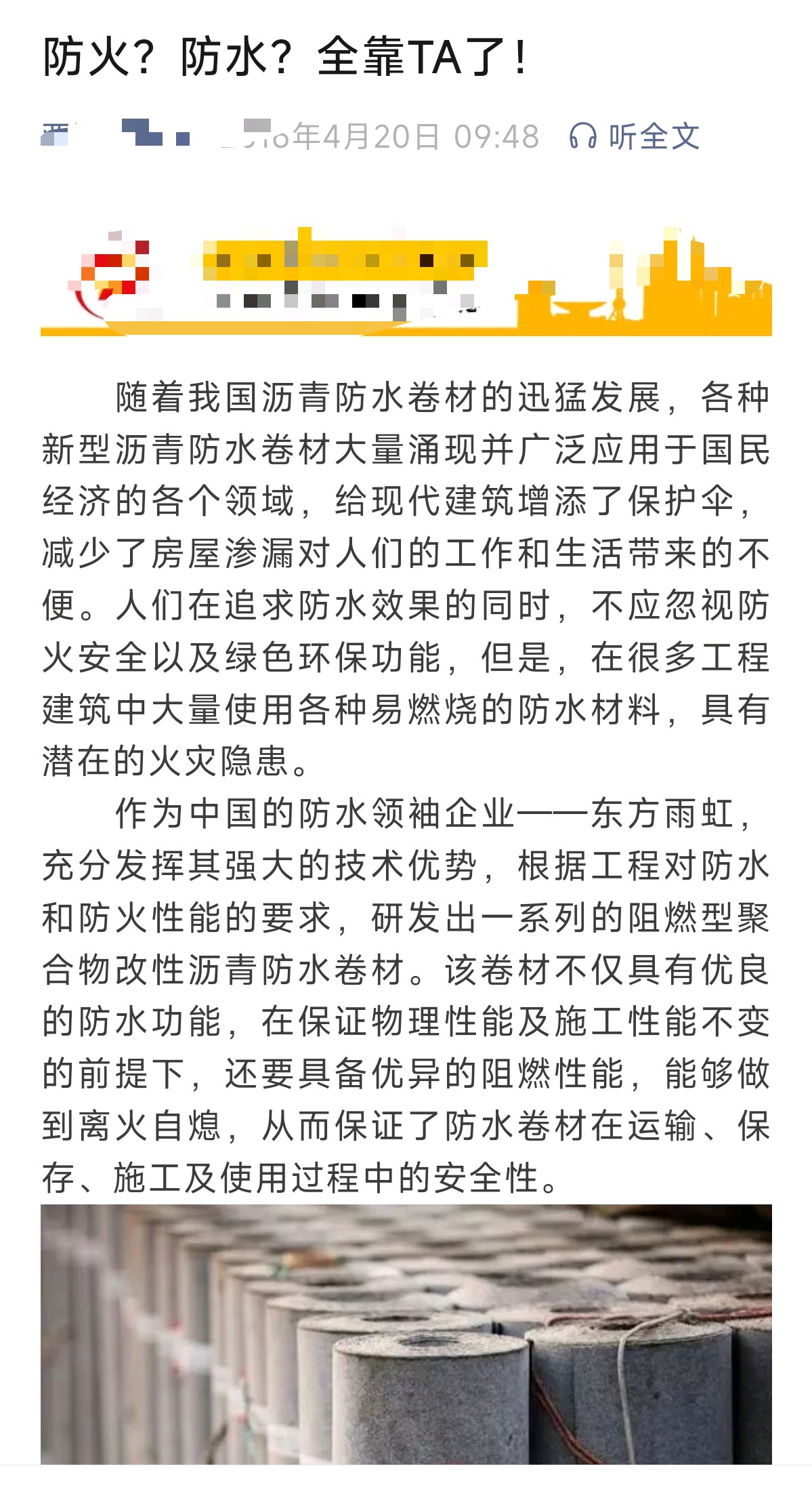 $东方雨虹(SZ002271)$ 假如你生产一款产品,既能防水又能阻燃就好了,那肯定是革命性的产品