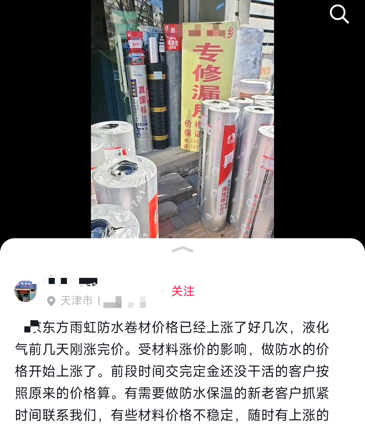 $东方雨虹(SZ002271)$ 某音里的,还有没有哪个地方材料涨价的。