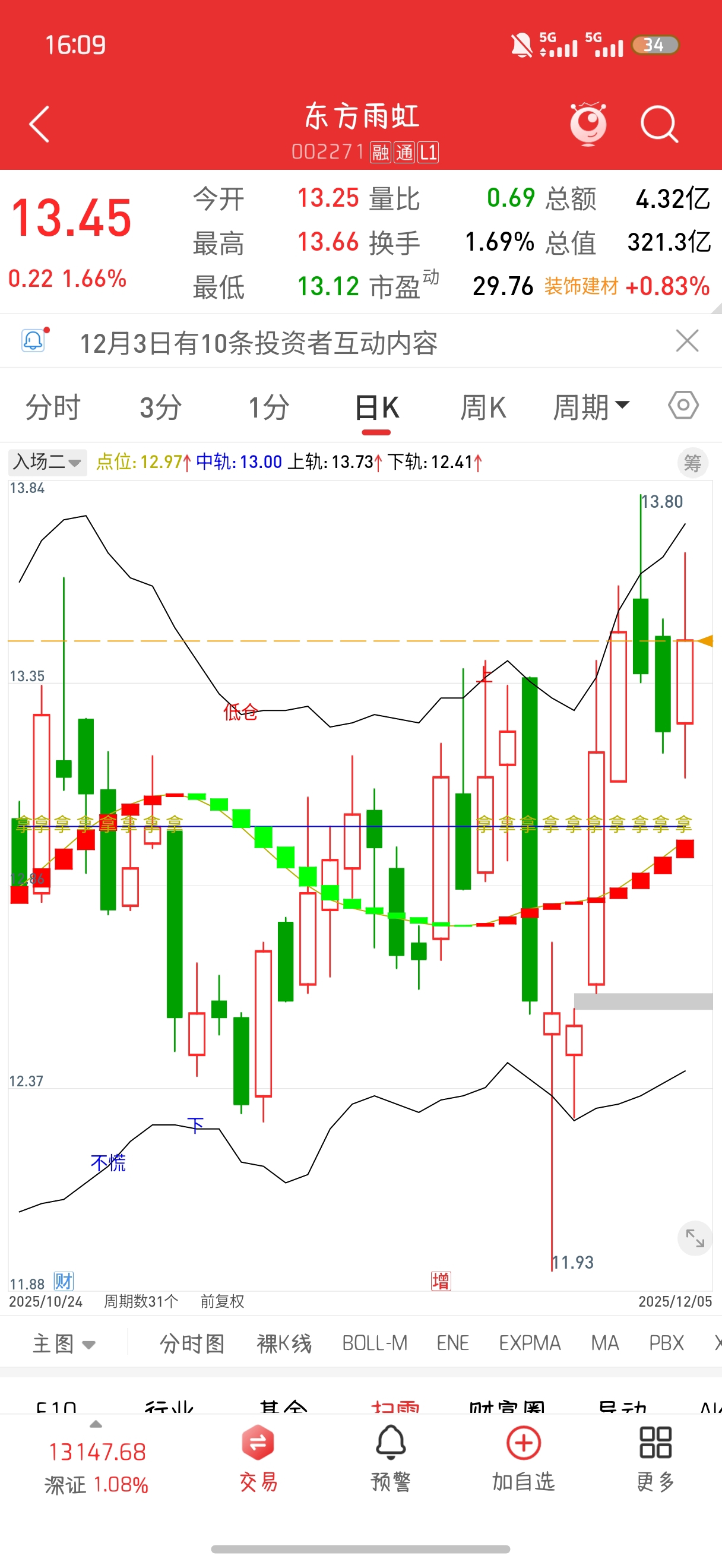 $东方雨虹(SZ002271)$ 日线是这样的,最近几天空间还不小吧