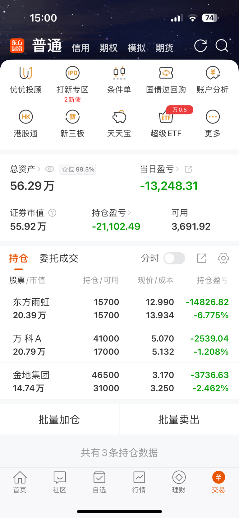 还好11月底转出去四百多万12.12-12.30,不操作。看好地产板块反转。为判