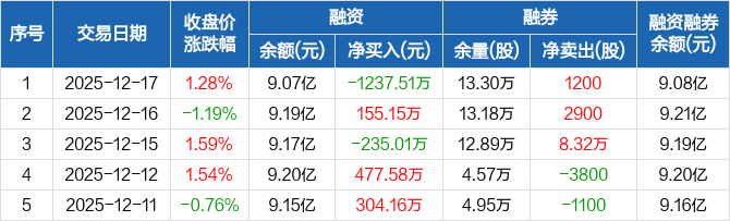 东方雨虹:融资净偿还1237.51万元,融资余额9.07亿元(12-17)