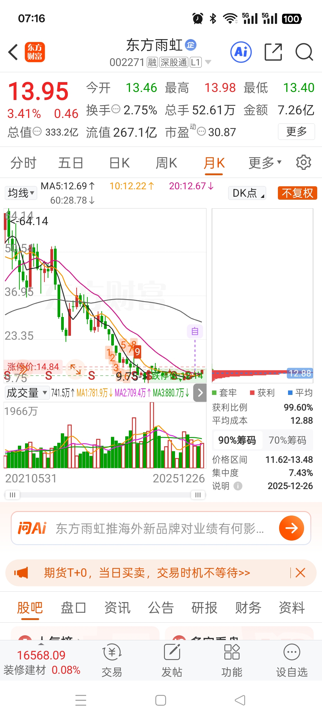 $东方雨虹(SZ002271)$ 榜一大哥的筹码分布图