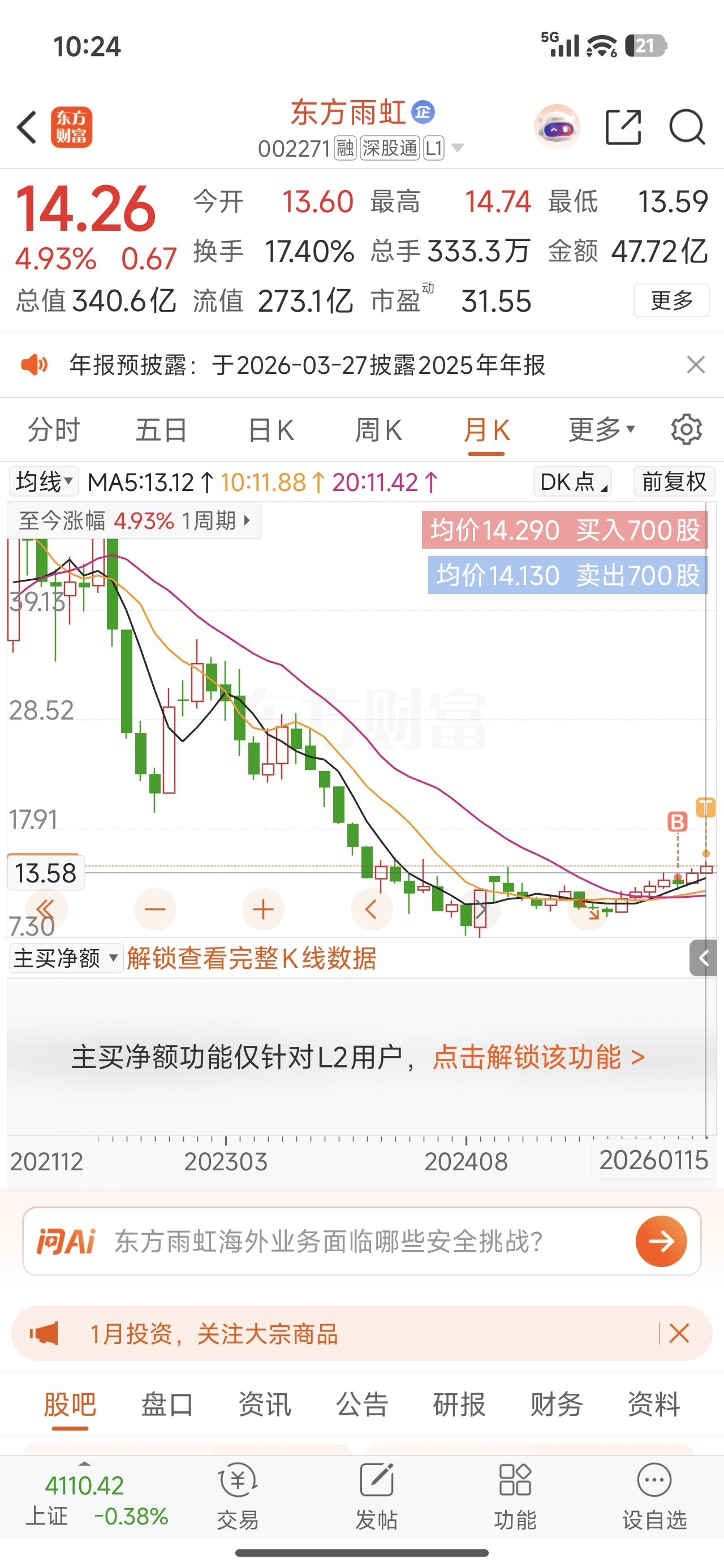 $东方雨虹(SZ002271)$ 看!我这神操作