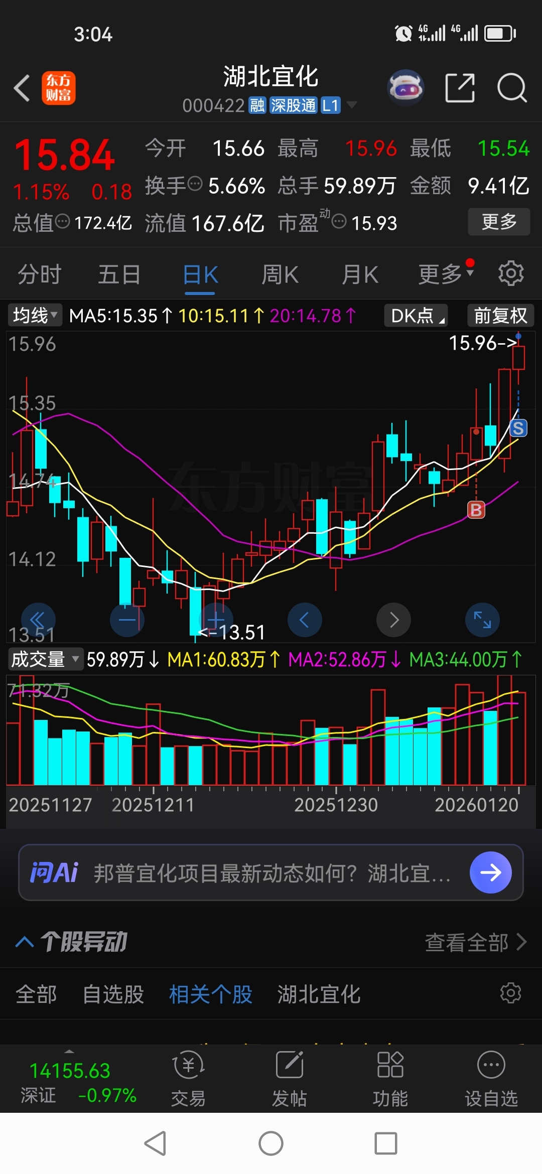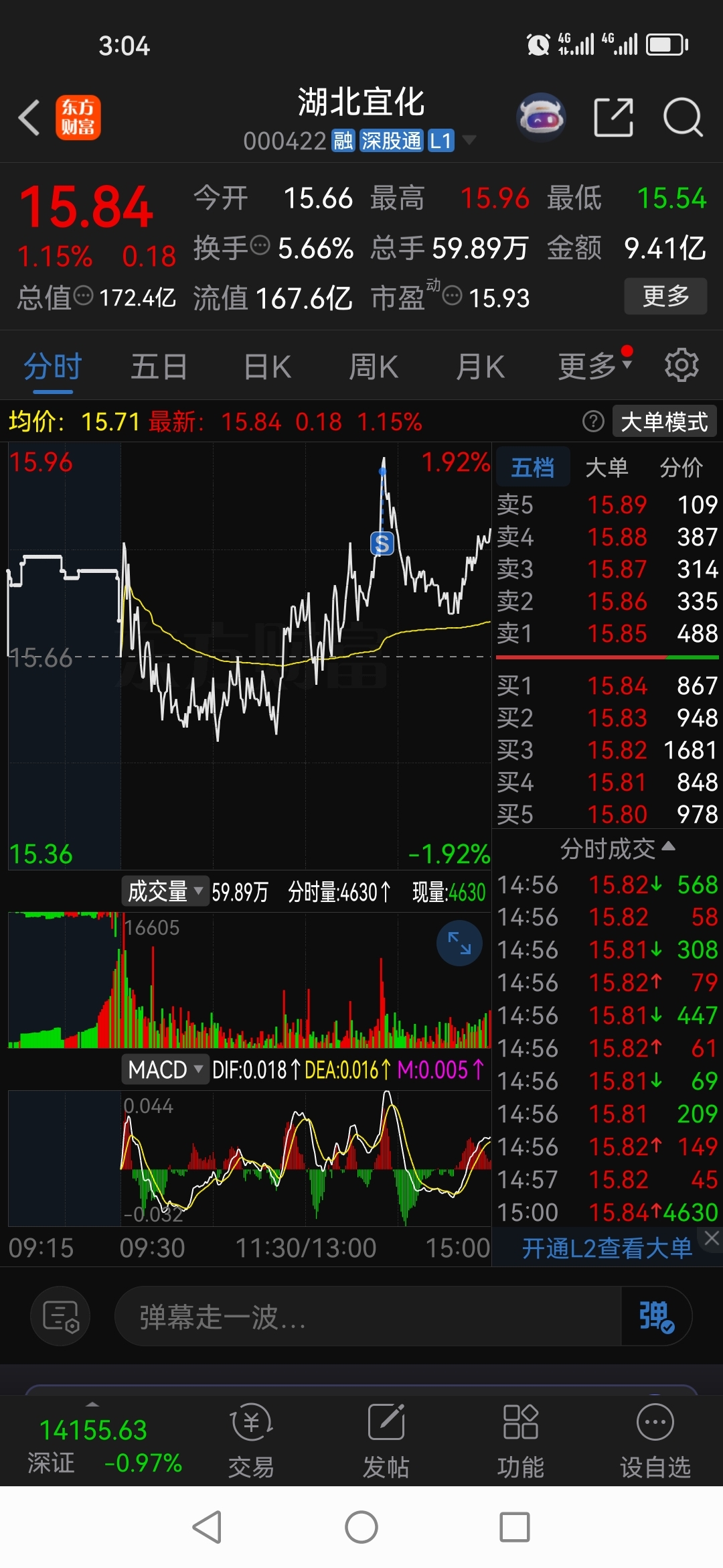 出了湖北宜化,东方雨虹,尾盘进了中国联通兴民智通西藏珠峰。湖北宜化下午挂15.7