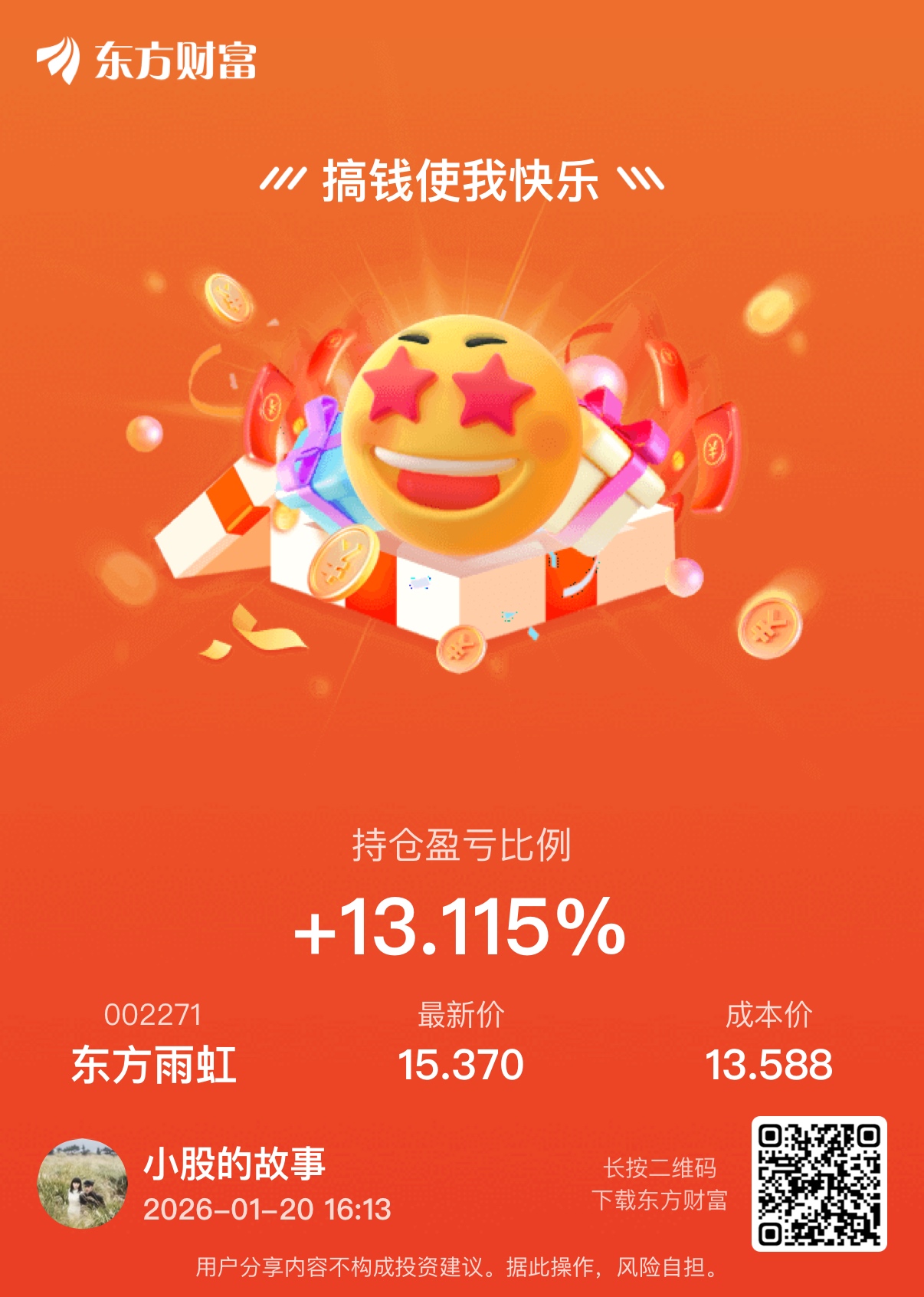 温馨提示: 1.根据《证券法》规定,禁止编造、传播虚假信息或者误导性信息,扰乱证券市场;2.用户在本社区发表的所有资料、言论等仅代表个人观点,与本网站立场无关,不对您构成任何投资建议。用户应基于自己的独立判断,自行决定证券投资并承担相应风险。《东方财富社区管理规定》