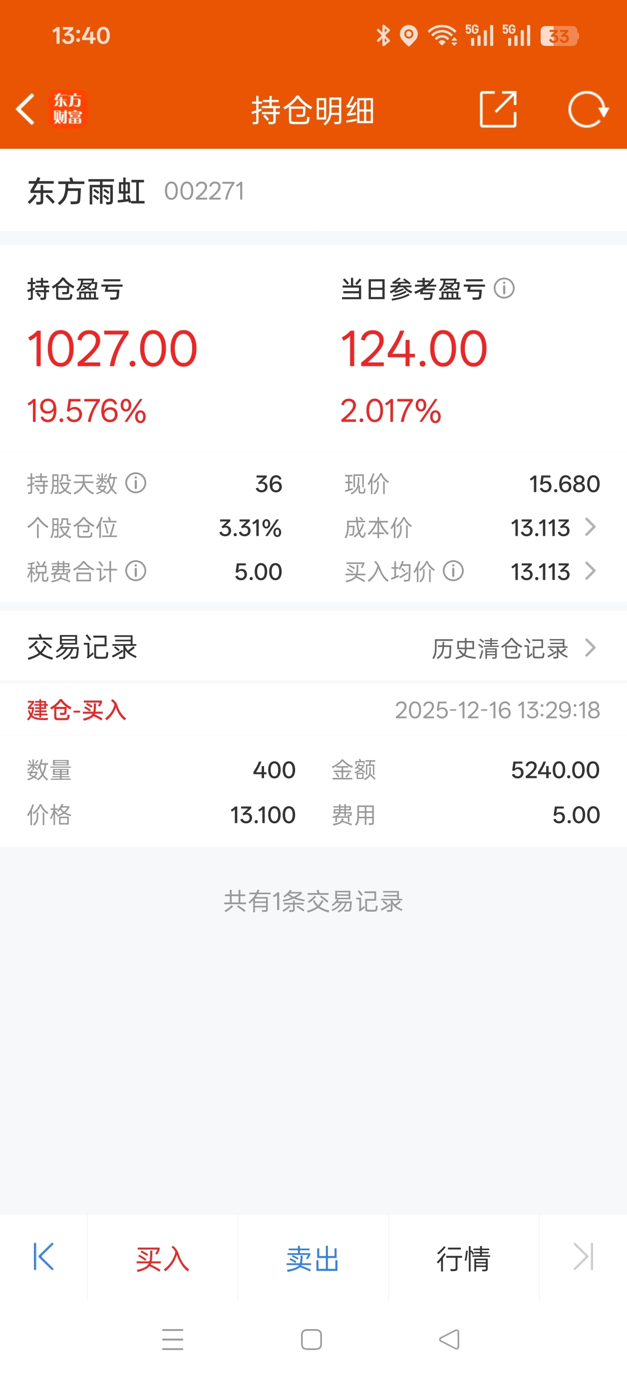 $东方雨虹(SZ002271)$ 就是仓位小了点
