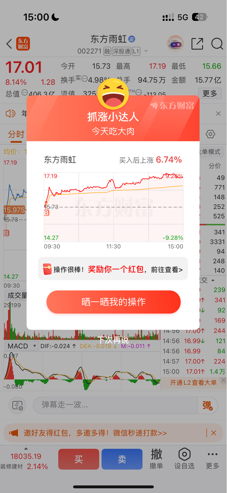 $东方雨虹(SZ002271)$ 明天最后一天要跑了.
