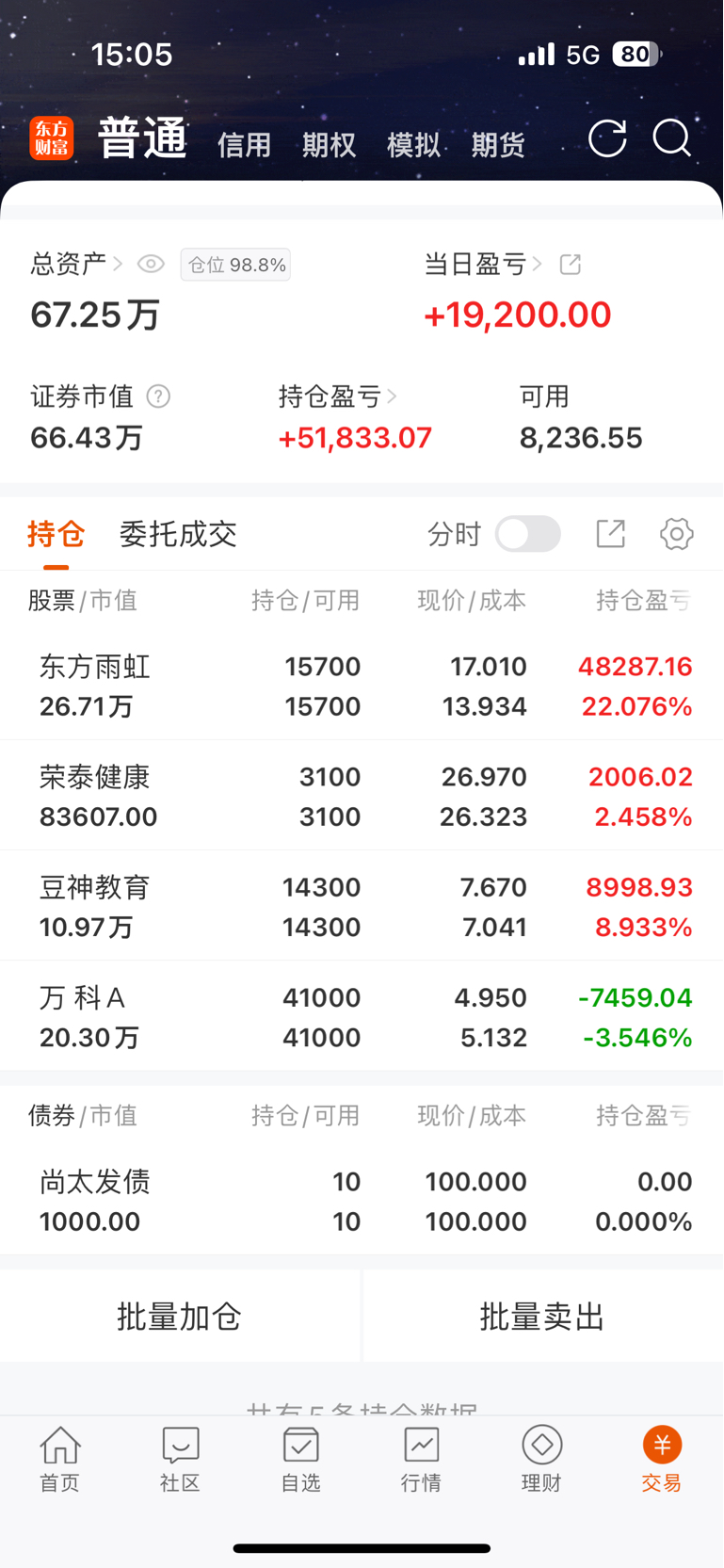 没交易。生活新体验:今天骑车35分钟到徐汇打羽毛球。