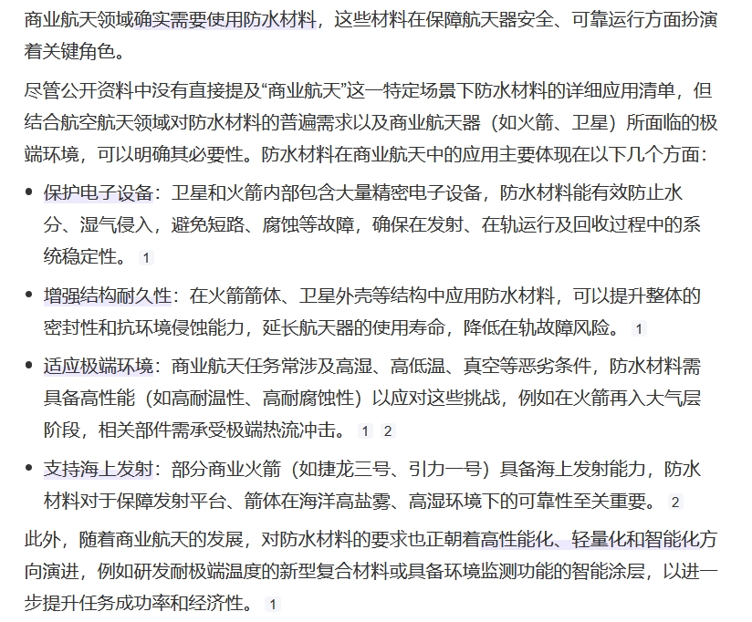 商业航天要用到防水材料,怎么少的了龙头雨虹。