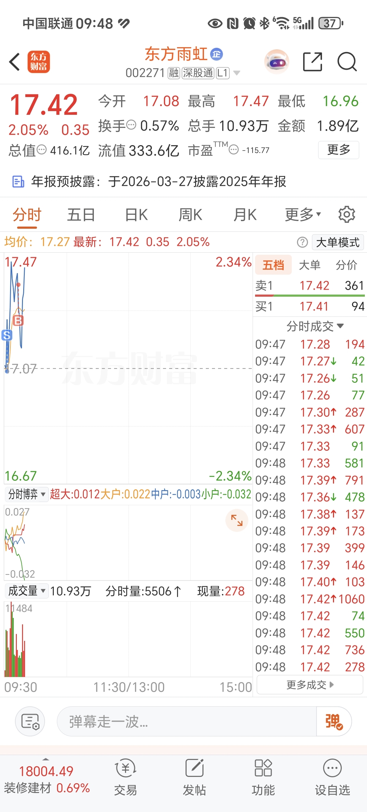 $东方雨虹(SZ002271)$ 买入点错卖出我也是人才一个,做了个反方向T