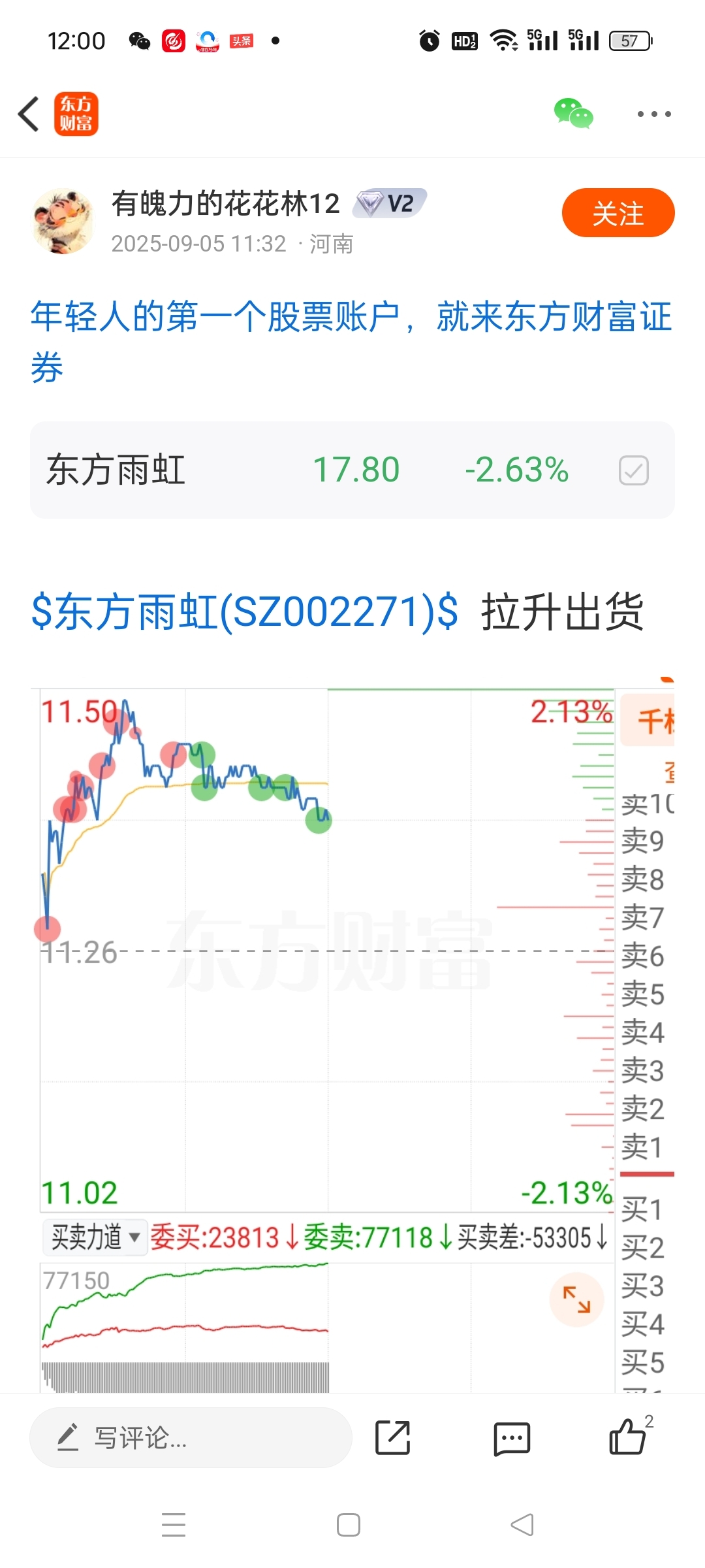 第一,在东方雨虹11.5元的时候说,拉高出货,第二在26年2月3日买入中孚实业,