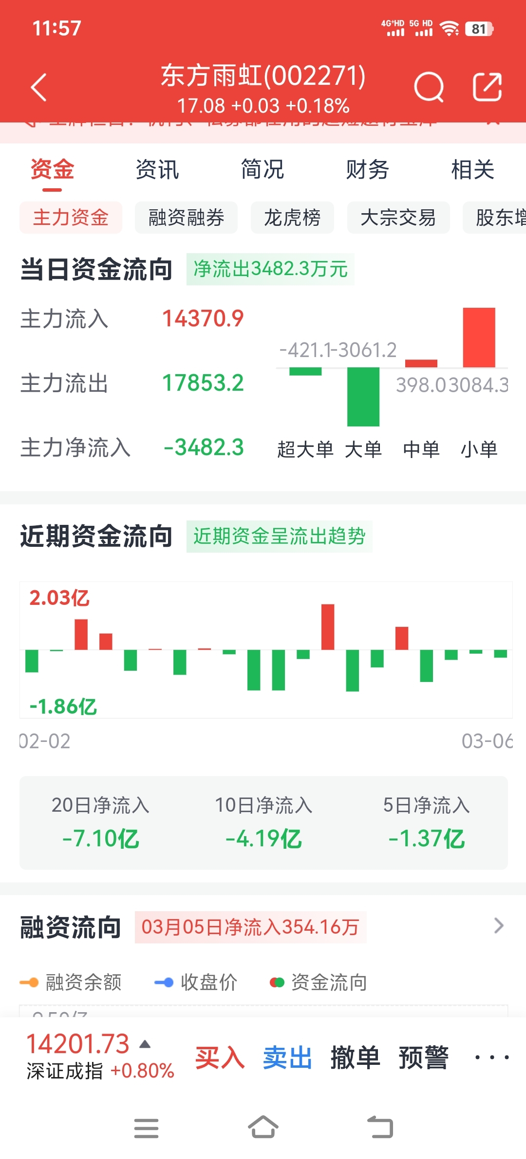 $东方雨虹(SZ002271)$ 自李卫国公布减持以来资金流出有些多。