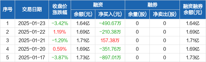川润股份:融资净偿还490.67万元,融资余额1.64亿元(01-23)