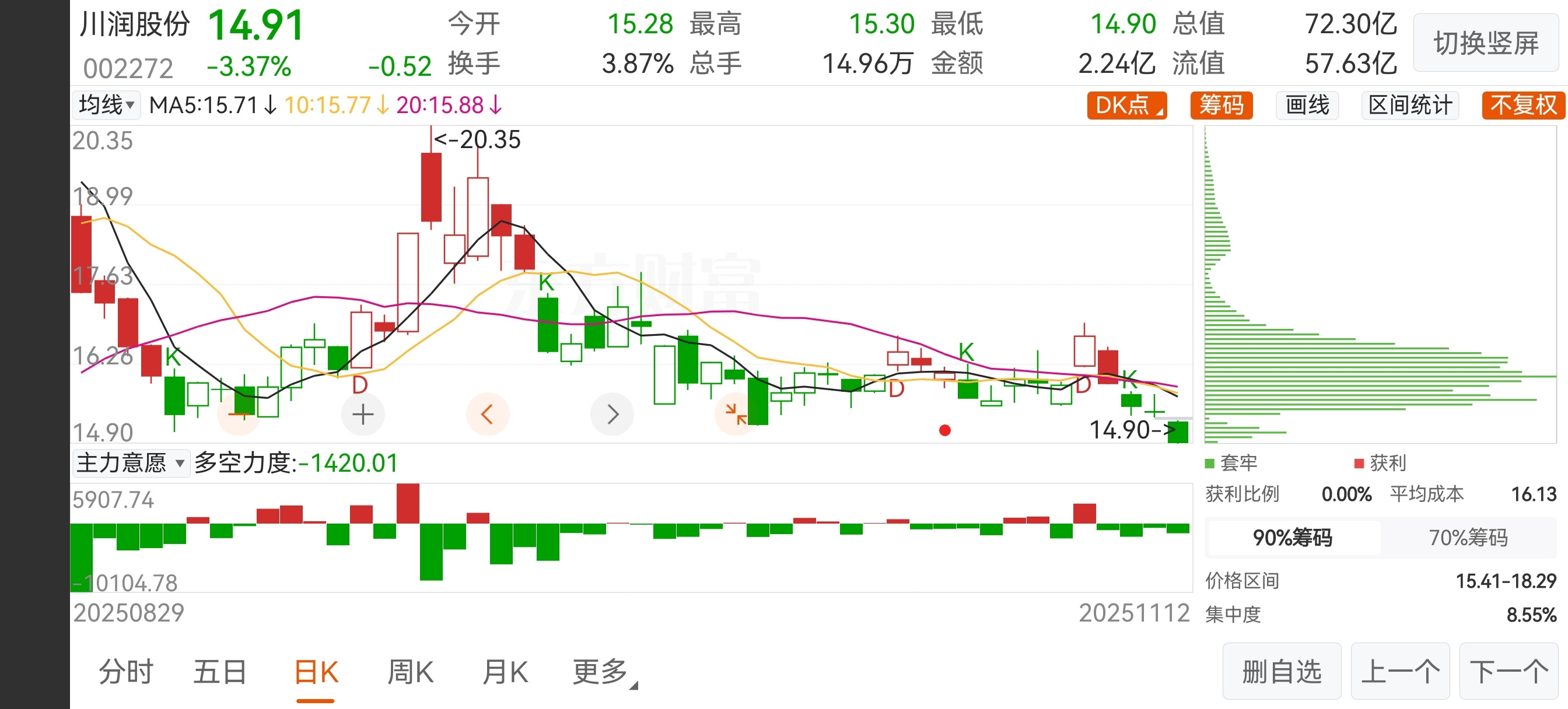 $川润股份(SZ002272)$ 获利比例0%,这是合理的吗