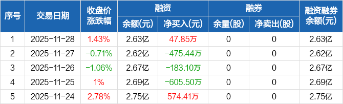 川润股份:融资净买入47.85万元,融资余额2.63亿元(11-28)