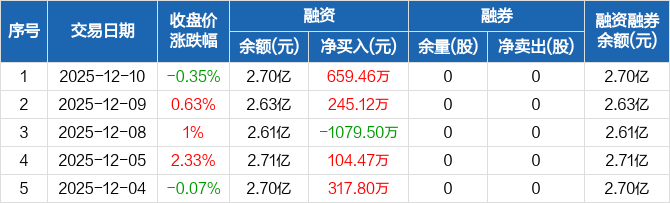 川润股份:融资净买入659.46万元,融资余额2.7亿元(12-10)